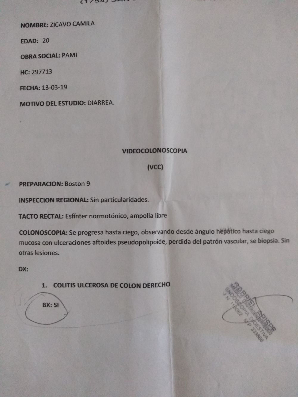 Tratamiento Colitis UlcerosaMesalazina = 2 comp por día, todos los días1 vez al año necesito una endoscopia y colonoscopia, lo cual este año no pude hacer.