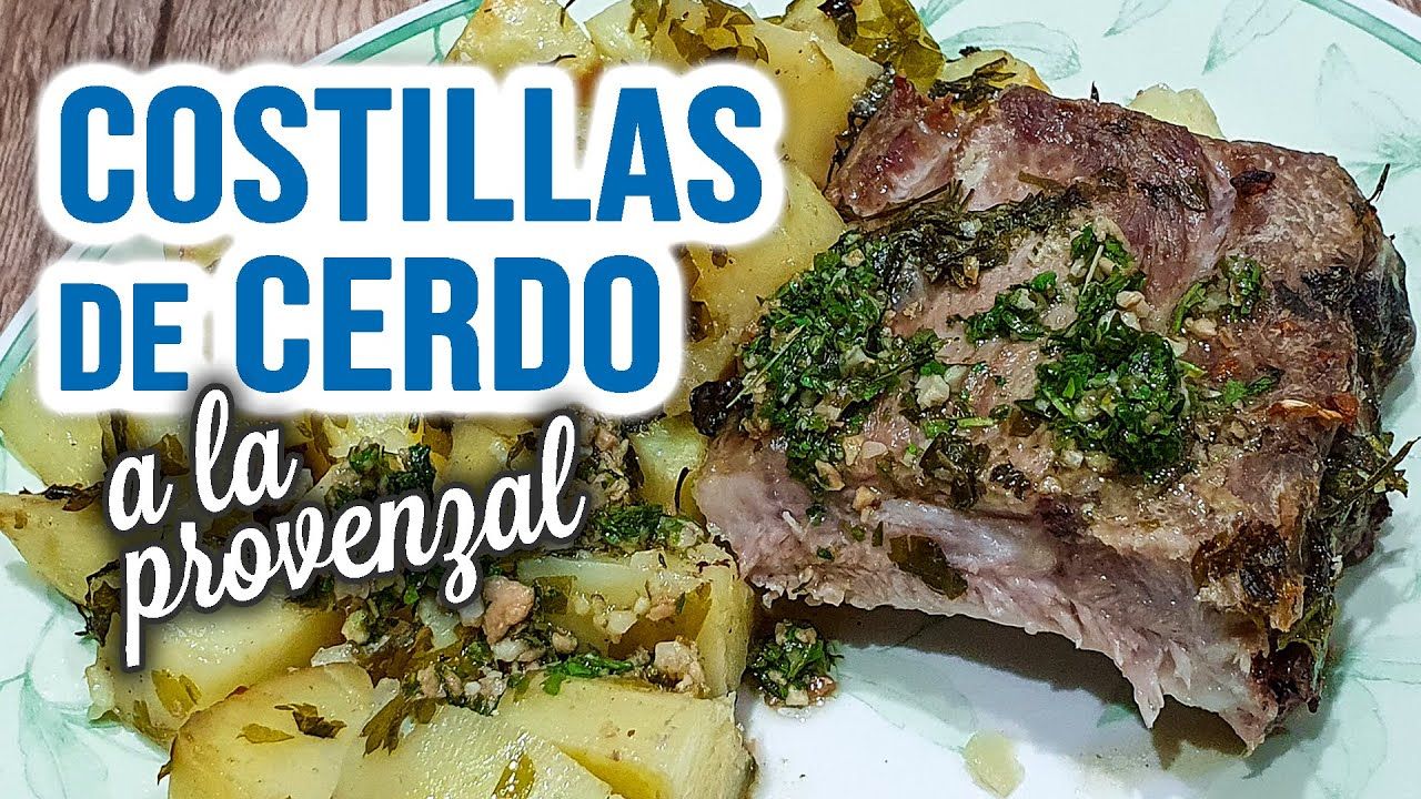 Costillas de cerdo a la provenzal con papas, al horno en una sola fuente