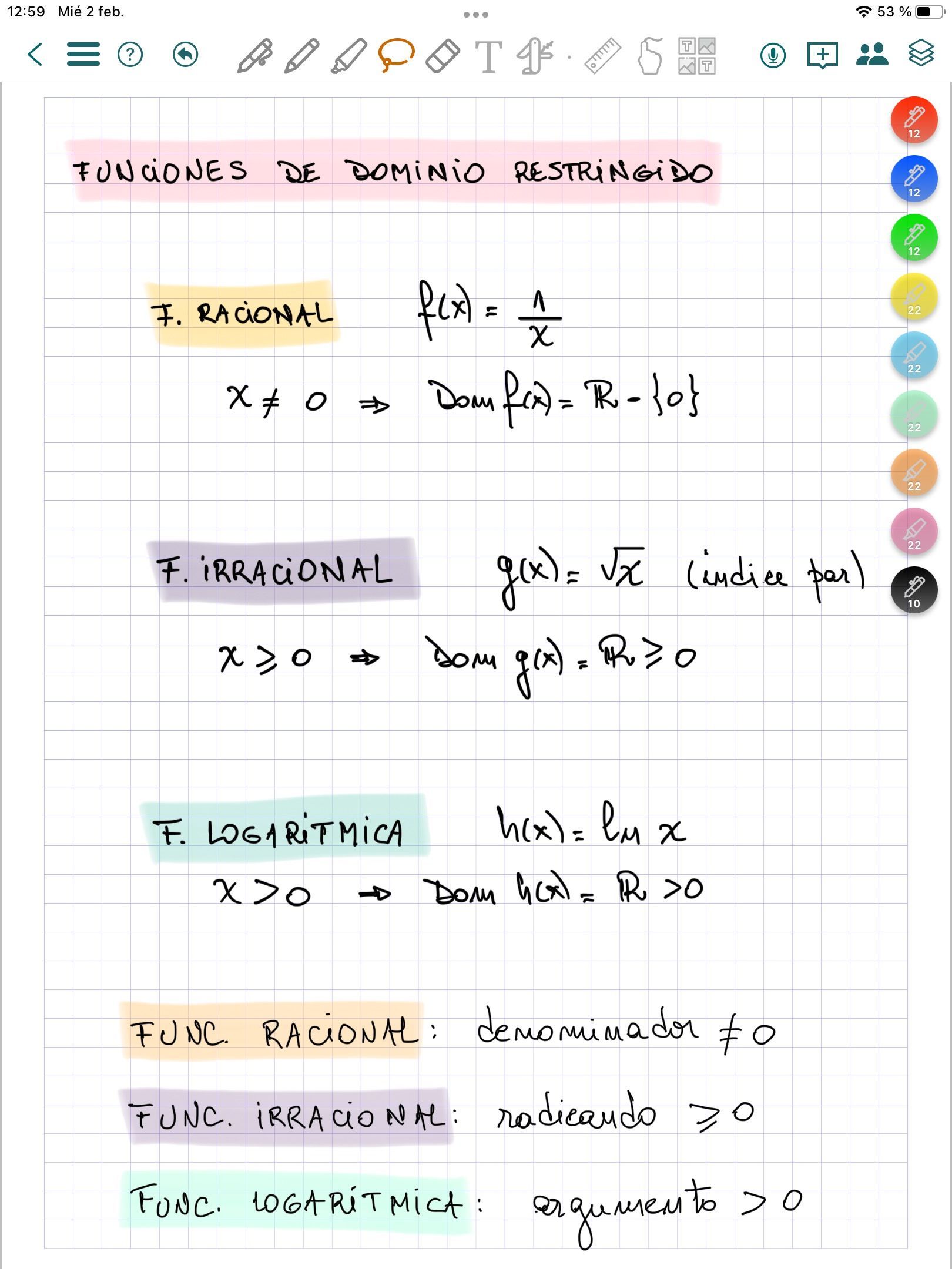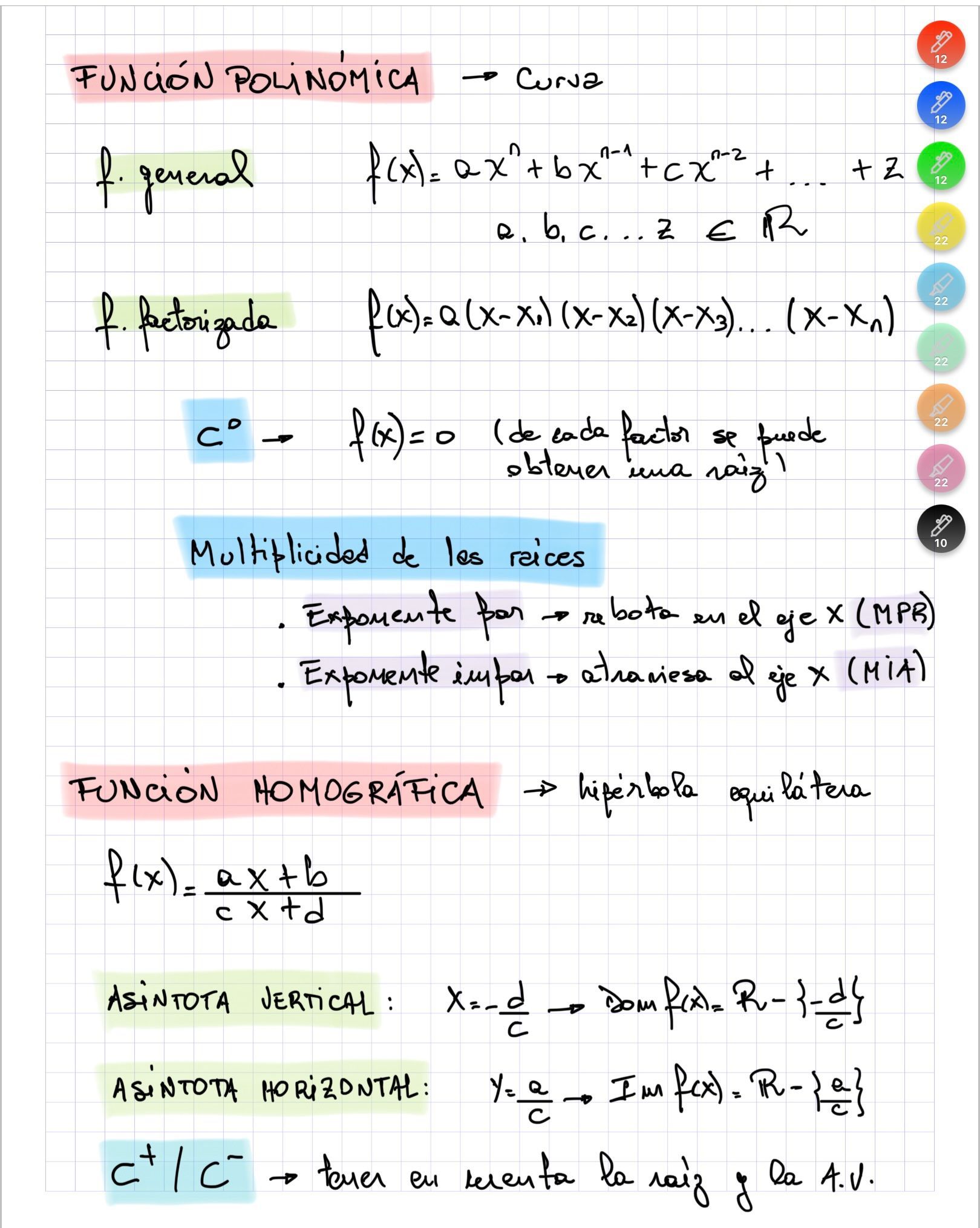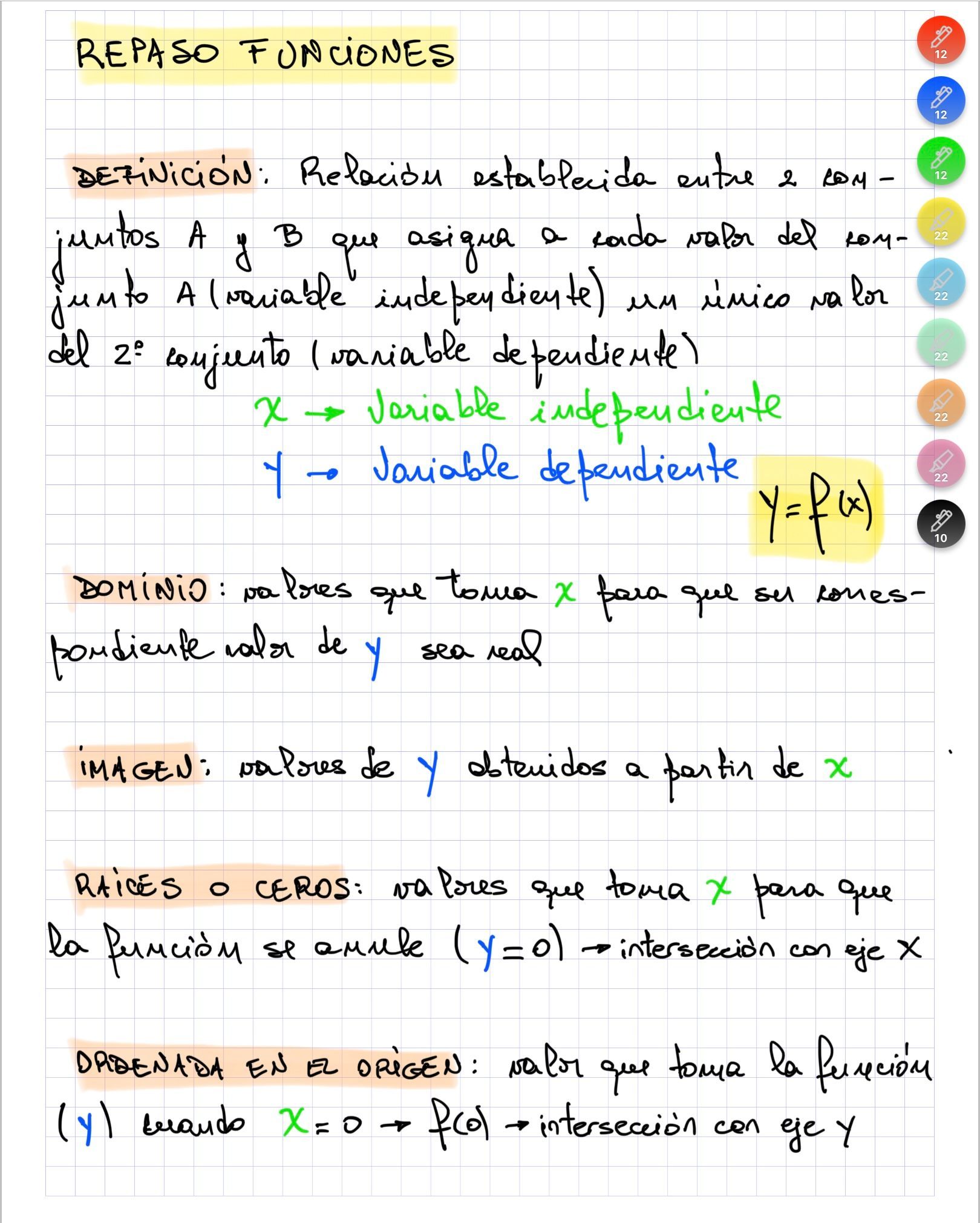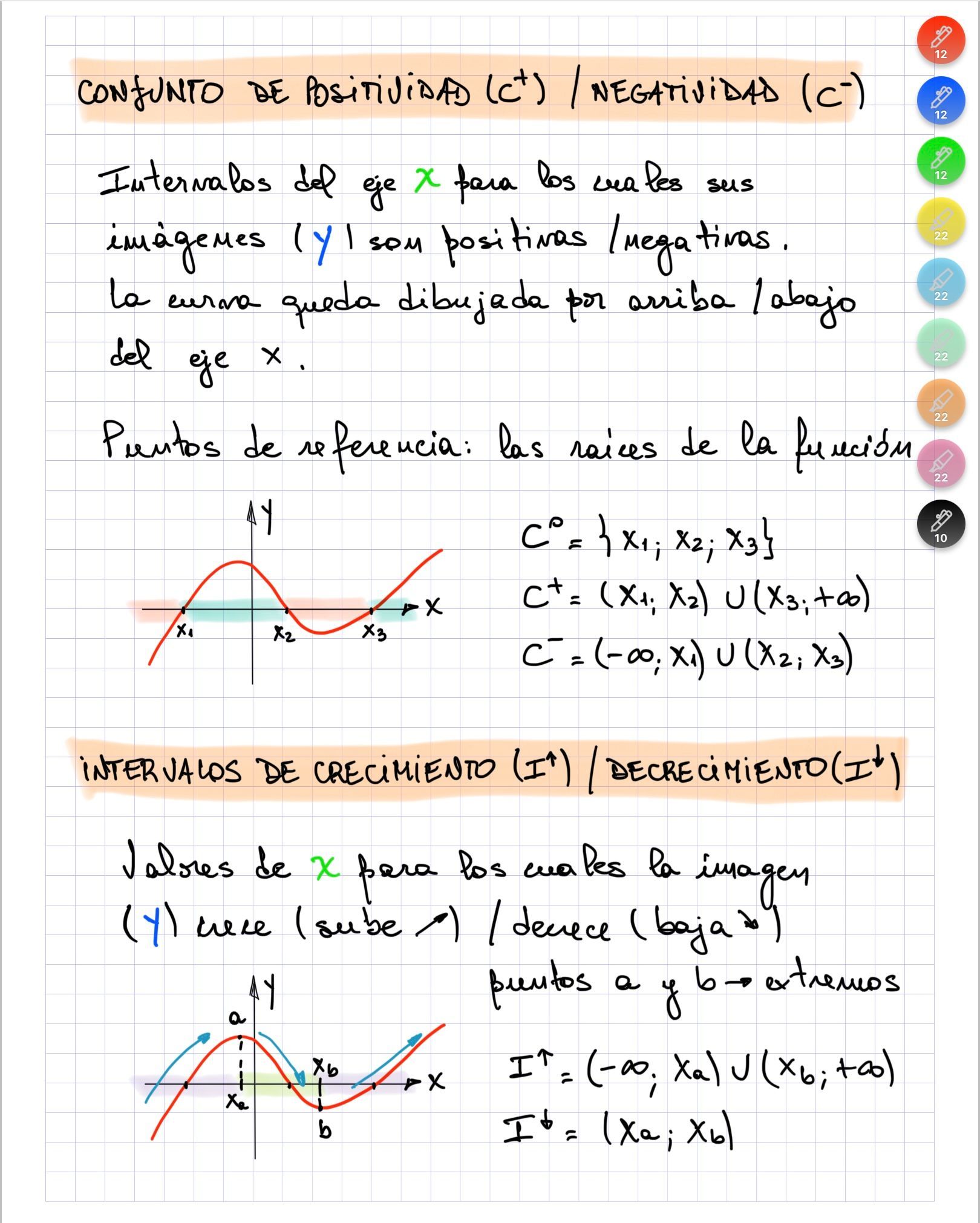 Funciones II (resumen)Conjuntos de positividad / negatividad. Intervalos de crecimiento / decrecimiento